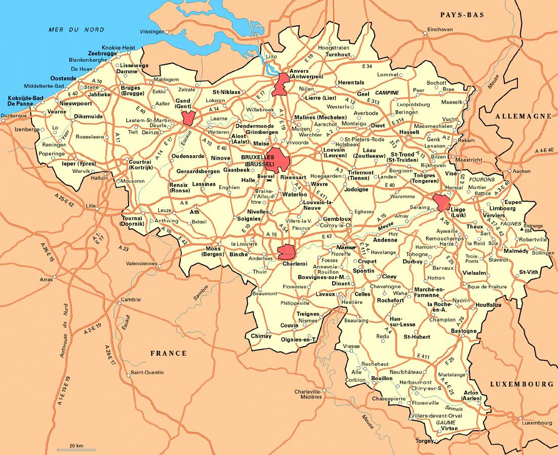 Carte détaillée de la Belgique